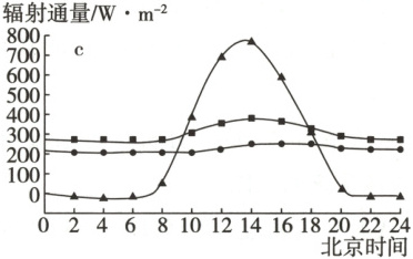 3.与b季节相比,c季节①辐射总量较大的主要原因是 (