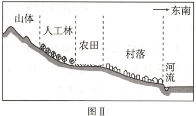 (2022湖南,6—7,6分)某地(图Ⅰ)位于太行山南段东麓,该地山势险峻,多暴雨,易发山洪。为适应当地地理环境,该地形成了西北—东南向的“山—林—田—村—水”空间格局(图Ⅱ),体现了当地居民的生存智慧。据此完成下面两题。