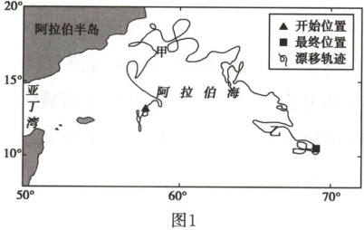 (2024安徽,12—14,9分)某全球海洋观测网在全球海洋投放数千个监测浮标,获取了全球海洋不同深度的温度、盐度、溶解氧、叶绿素等海量数据。我国于21世纪初加入该观测网。图1为我国在阿拉伯海投放的某个浮标2011年11月至2016年6月持续漂移轨迹示意,图2为该浮标获取的不同深度海水逐旬平均温度。据此完成下面三题。
