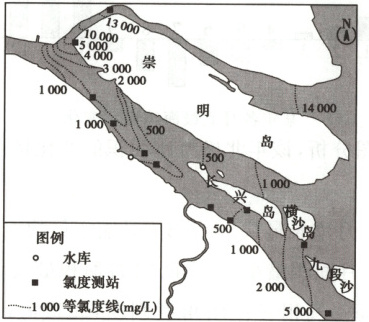 )2.导致崇明岛南北两侧氯度差异的主要因素是 (