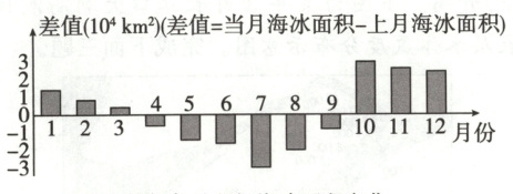 解题指导:通过阅读某年各月北极海冰面积变化图,获取当月与上月海冰面积的差值,进而推断出各月海冰面积的增减情况。