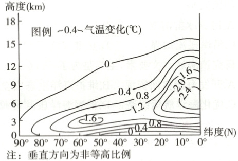 (2)运用海—气相互作用原理分析热量、水分的变化。海水温度随纬度的降低而升高,气流南下过程中会得到更多来自海水的热量,气流温度升高;低纬度海水蒸发量大,气流增温也会增加饱和水汽压,容纳水汽的能力增强,导致空气湿度增加。
