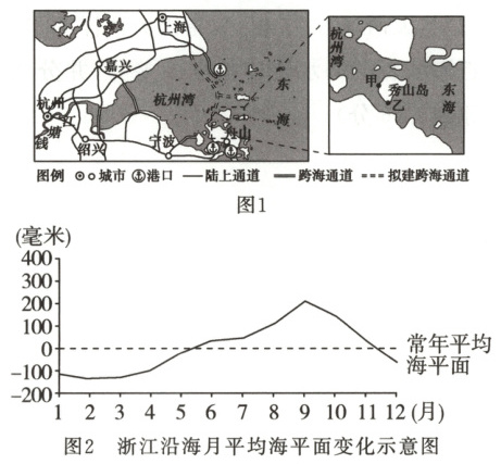 据图2说明浙江沿海地区海平面季节变化规律并分析原因。