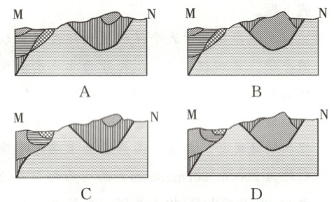2.符合勘探队由 M 向 N 行进时观察到的岩石的地质构造剖面是 (