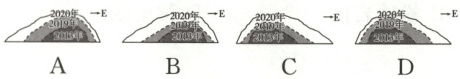 4 A 首先,根据两图中沟口与公路的相对位置和公路的弯曲形态,判断Q侧在东,P侧在西。其次,通过比较不同年份堆积体的水平方向和垂直方向上的差异,比较PQ沿线,不同年份堆积体界线Q侧密、P侧疏,可知不同年份堆积体水平距离Q侧较窄、P侧较宽。比较沟口冲出量,三个年份的冲出量相当,但在堆积体上的覆盖面积2020年>2019年>2013年,说明三个年份堆积物的厚度比较是2020年<2019年<2013年。故A选项正确。
