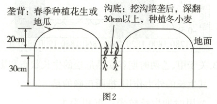 (2)针对白浆化棕壤低产的原因,江苏北部某地农民在长期生产实践过程中,摸索出了一种改良及合理利用白浆化棕壤的农田工程措施——丰产沟(图 2)。说明丰产沟如何克服白浆化棕壤对农业生产的不利影响。(10 分)