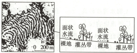 (2)读图可知,虎纹灌丛呈现“灌丛带一裸地”相间的斑