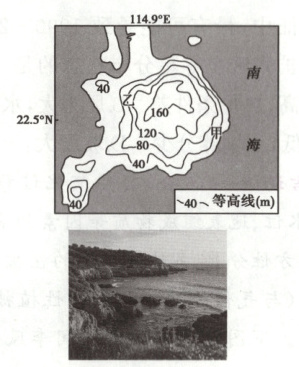 (2025南通二模,7—8)广东省东部某半岛不同坡向植被差异显著,乙处以地带性植被为主。下图为该半岛等高线地形图及甲处植被景观图。据此完成下面两题。