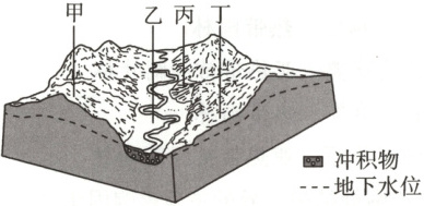 (2024黑吉辽,8—9,6分)河谷演化过程中,受坡度、地下水位、地表组成物质等因素的影响,植被会发生地方性分异,各地貌位置的植被处于向地带性植被(与气候相适应的稳定性植被)演替的不同阶段。下图示意暖温带湿润季风气候区某河谷地貌形态。据此完成下面两题。