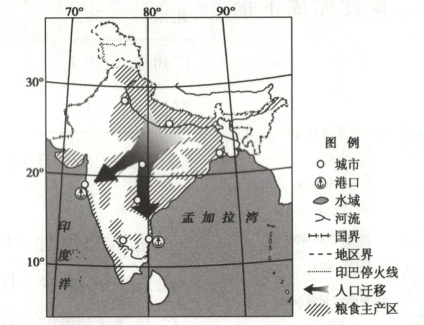 材料一 2021年,印度人口13.9亿,年龄结构较为年轻。该国城镇化水平34.5%,低于亚洲主要发展中国家,近年来国内人口出现跨区域迁移。该国粮食生产基本自给,是世界主要粮食出口国,但粮食出口常受政策限制。