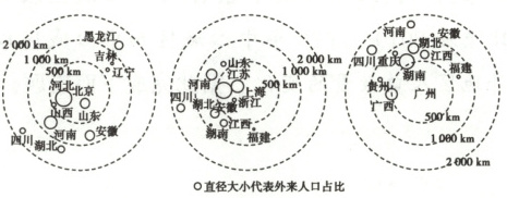 3 A 读图可知,迁入北京的人口主要来自距北京较近的河北、山东、河南等省,迁入上海的人口主要来自距上海较近的安徽等省,迁入广州的人口则主要来自距广州较近的湖南、广西、江西等省区,即三大城市的外来人口省区分布具有明显的地域性,A正确。