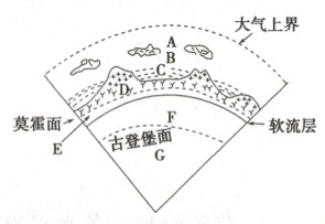 C.地球内部圈层由 E、F、G 三部分组成,其中 G 为地核