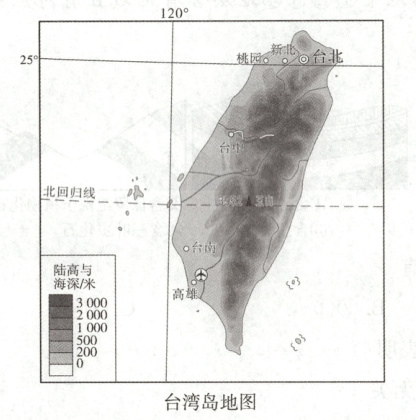 材料一:我国的台湾岛,以山地、丘陵为主,其面积约占全省土地总面积的2/3,平原约占1/3。全岛山系纵贯南北,主脊中央山脉位置偏东,基本呈东北—西南走向,由亚欧板块和太平洋板块挤压形成。台湾岛的西部为向台湾海峡延展的宽狭不一的冲积平原。