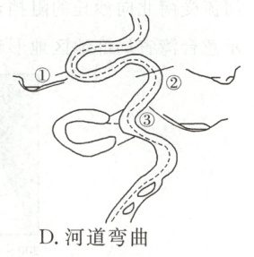 1. 图中河道形态一般出现于(