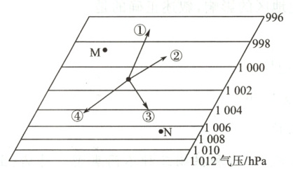 。(3)若无④,只受①③影响,则②与等压线的关系是