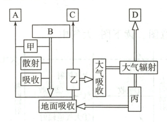 (3)多云的白天,大气对太阳辐射的削弱作用强 甲