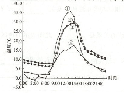 4. 图中四条曲线中,表示拱棚日光温室室内的是(