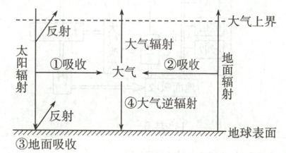 1. 下图为地球大气受热过程示意图。读下图,大气中(