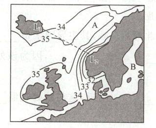 6. 下图为欧洲局部海域等盐度线分布图(单位:‰)。读图,回答问题。