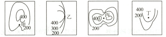 5. 下列四幅图中(单位:米),甲、乙、丙、丁四个地点(均位于三峡库区)土壤厚度最大的是(