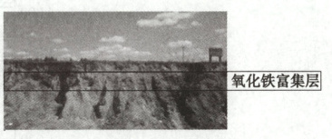 某地质科考队在大兴安岭考察时,发现当地的原始地貌为山前冲积扇前缘,土壤分为粗颗粒层和细颗粒层两种。土壤类型主要为淋溶黑钙土,但在背风坡海拔200米处(45°45'01''N,122°33'47''E)发现土壤变为栗钙土,并且该处地层的上部偏红,说明氧化铁(三氧化二铁)在该处富集。据此,完成下列问题。