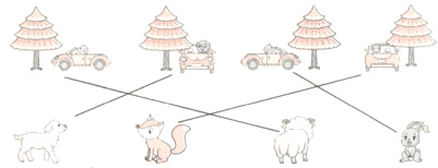 1. 图中的几幅图分别是谁看到的? 连一连。(8分)