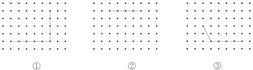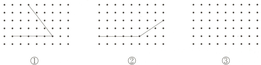 2. 在①中接着画一个长方形;在②中接着画一个正方形;把③分成一个直角和一个锐角。(6分)