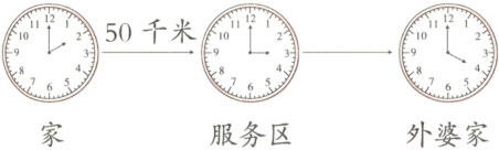 5. 新情境生活情境下面分别是笑笑爸爸开车从家出发、到达服务区和到达外婆家的时间,由图可知,笑笑家可能距外婆家(
