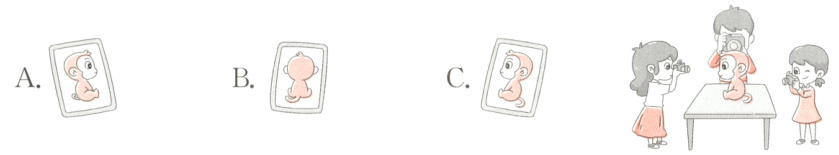 2. 如图,三个小朋友给小猴拍照,下面照片中,(
