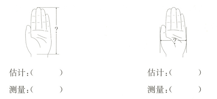 3. 伸开左手,估一估,量一量自己的手有多长、有多宽。(4分)