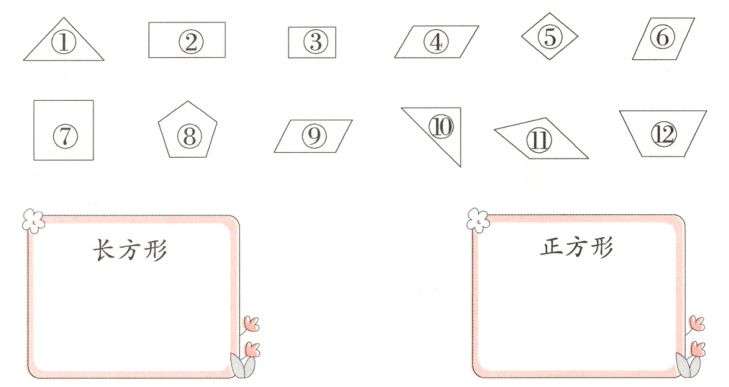 2.长方形:②③ 正方形:⑦