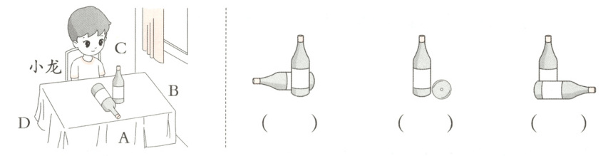 5. 下面三幅图分别是小龙坐在桌子的哪个位置观察到的?填字母。
