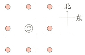 2. 月月爸爸的手机开机密码描述如下:从开始,先向西北方向连1格,然后向南连2格,再向东连2格,最后向西北方向连1格到。请你在图中画一画。(5分)