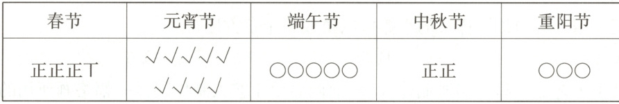 1. 下面是奇奇对本班同学最喜欢的传统节日的情况统计。