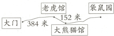 3. 奇奇从大门出发经过老虎馆、大熊猫馆到袋鼠园,从大门到袋鼠园共有 960 米,大熊猫馆到袋鼠园有多远? (5 分)