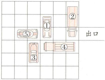 5. 所有的汽车只能向前或者向后移动,请你移动图中的车辆,让⑤号车安全到达出口。(15分)