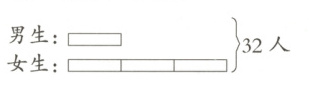 由图可知,合唱团的总人数是男生人数的3+1 =4倍,即32=男生人数×4,求男生人数,用除法计算。