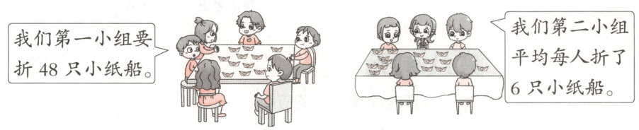 [解析]看图可知,第二小组有5人。求第二小组一共折了多少只小纸船,也就是求5个6是多少,用乘法计算。