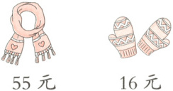 7.66 [解析]买图中的两件礼物共需要55+16=71(元),琪琪带的钱比71元少5元,求琪琪带了多少元,用减法计算,71-5=66(元)。