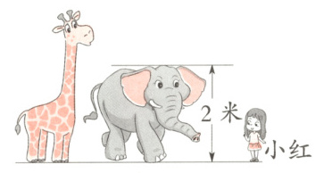 8. 估一估,长颈鹿和小红分别有多高?