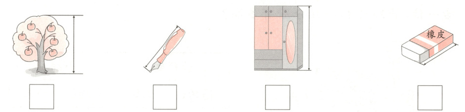 1. 估一估,比1米长的画“√”,比1米短的画“×”。(4分)
