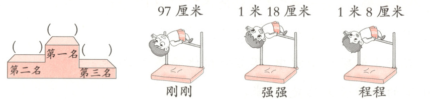 2. 跳高比赛。(按获奖的名次把名字写在领奖台上)(6分)