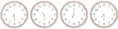 4. 按规律画出第4个钟表的时针和分针。(4分)