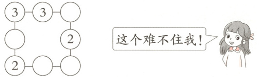 1. 在$◯$里填上合适的数,使每条线上的三个数相加的和都等于10。(4分)