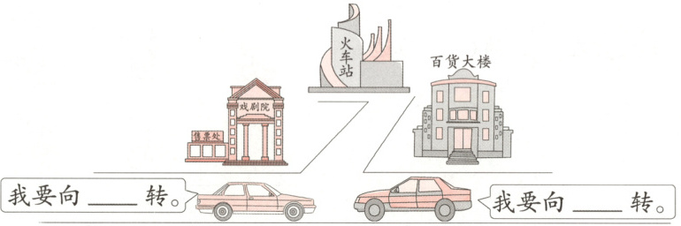 1. 两辆车都要去火车站,该怎么行驶?(填“左”或“右”)(4分)