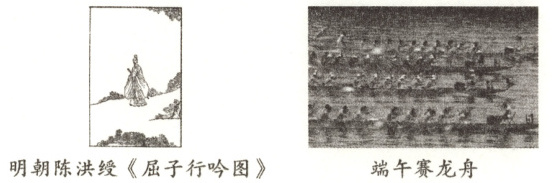 12.A 【解析】根据所学知识可知,屈原是伟大的爱国主义诗人,他在楚国担任重要官职,在遭到排挤后,忧国忧民的心志从未改变。秦国军队攻占楚国都城后,屈原无比悲愤,带着至死不离开楚国的决心投江自尽。屈原为国为民而死,人们用绘画、端午节赛龙舟等方式怀念他。