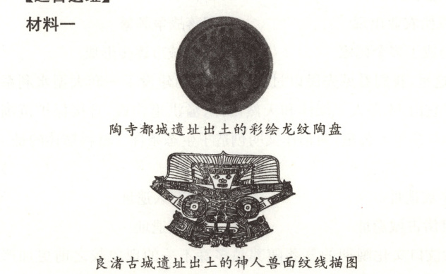 (1)陶寺都城有独特的彩陶艺术;陶寺都城已有龙文化;良渚古城当时有对神的信仰;陶寺都城和良渚古城文明程度高。(任意回答两点即可,其他符合题意亦可)
