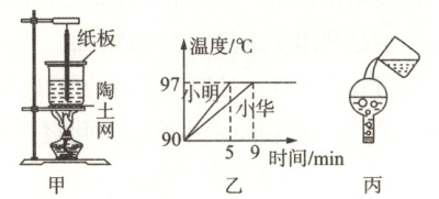 (2) 实验过程中两名同学分别绘制了水的温度随时间变化的图像(如图乙所示),两名同学得出的图像不同的原因是水的