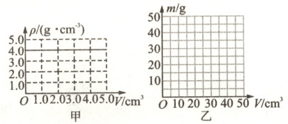 17. 如图甲是某物质的密度与体积的关系图像,请在图乙中画出该物质的质量与体积的关系图像。
