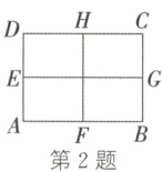 2. 如图,在矩形ABCD中,$AB>BC$,点E,F,G,H分别是边DA,AB,BC,CD的中点,连接EG,HF,则图中共有矩形(